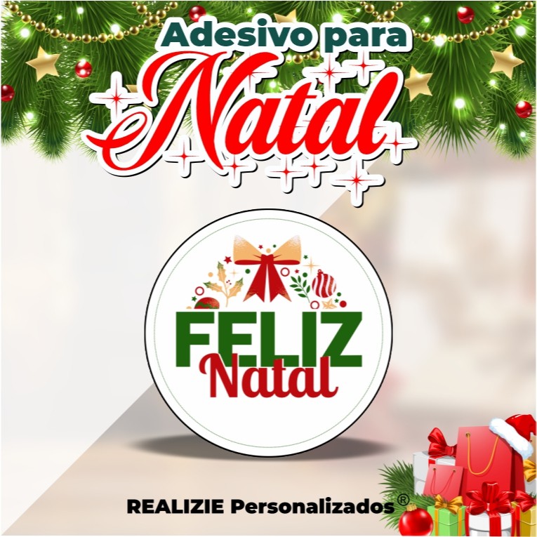 Adesivo Feliz Natal KIT 100und 4x4cm REF16